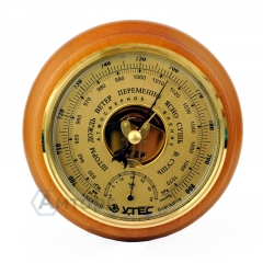 Действие барометра основано на свойстве мембранной анероидной коробки деформироваться при изменении атмосферного давления. Линейные перемещения мембран преобразуются передаточным рычажным механизмом в угловые перемещения указывающей стрелки барометра. Шкала градуирована в Паскалях.